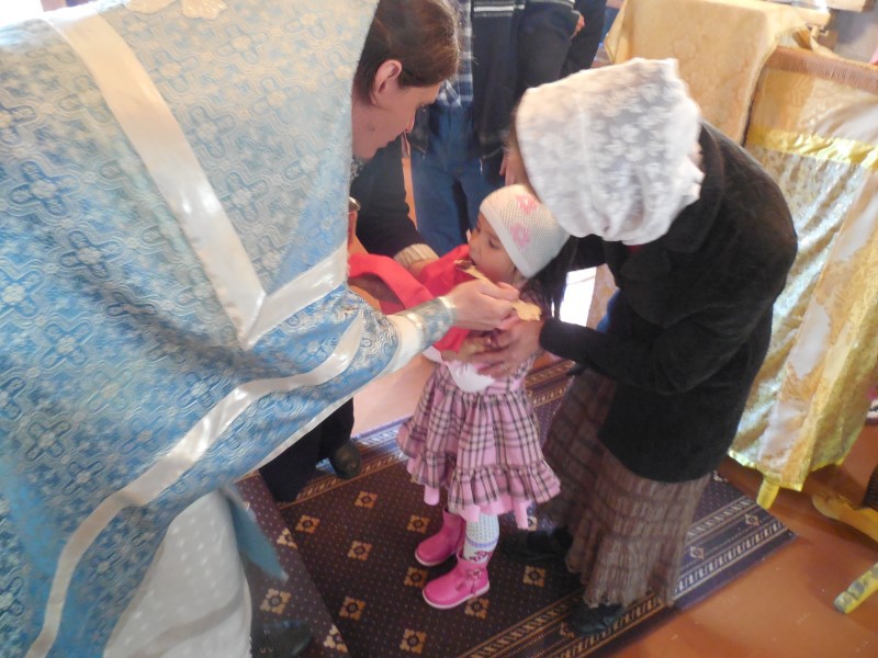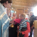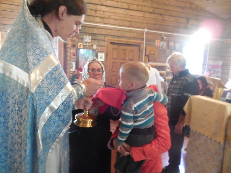 Батюшка поздравил прихожан с праздником Успения Божией Матери, который был накануне, и причастием.