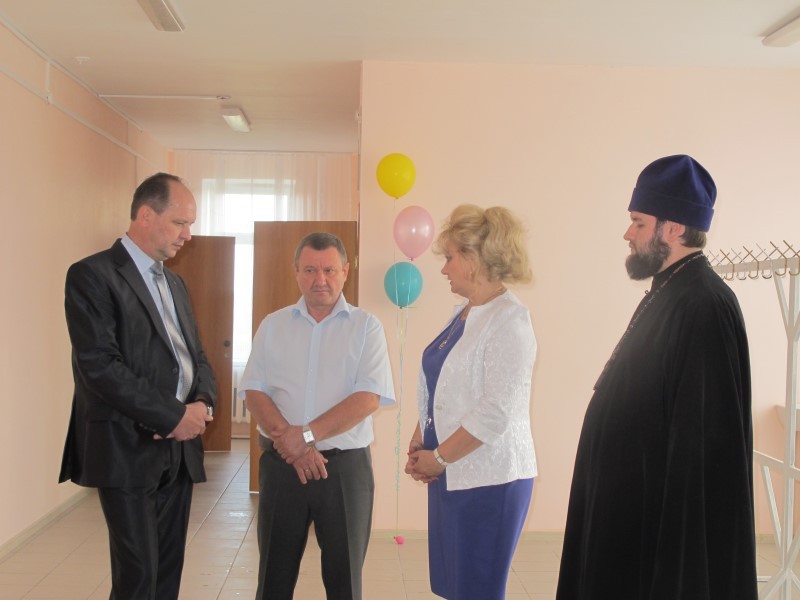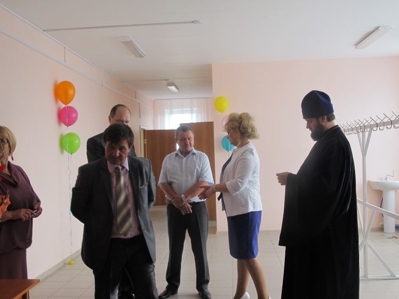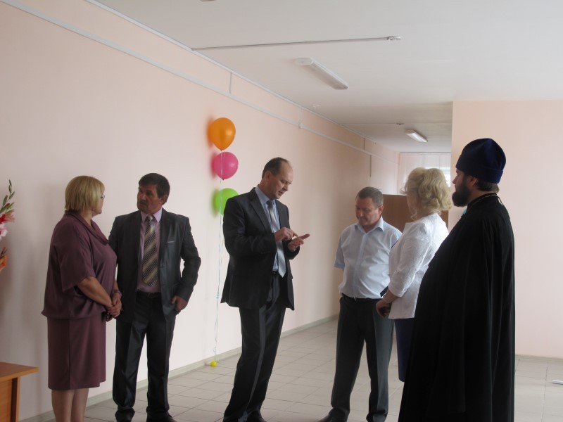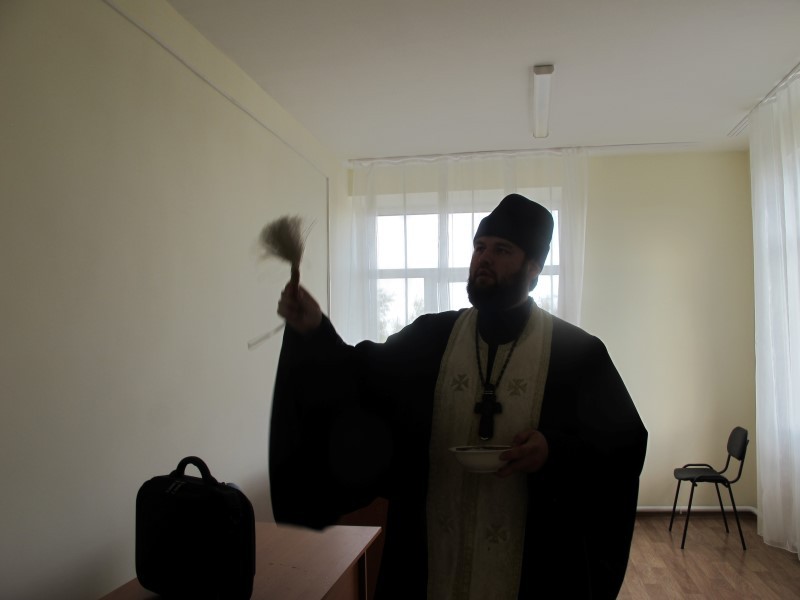Перед началом церемонии открытия отец Игорь совершил освящение помещения школы.