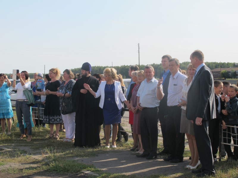 Затем состоялось торжественное открытие, на котором с приветственным словом выступили глава района Гофман Александр Павлович и глава Троицкого сельсовета Шимко Сергей Иванович.