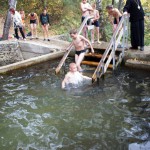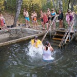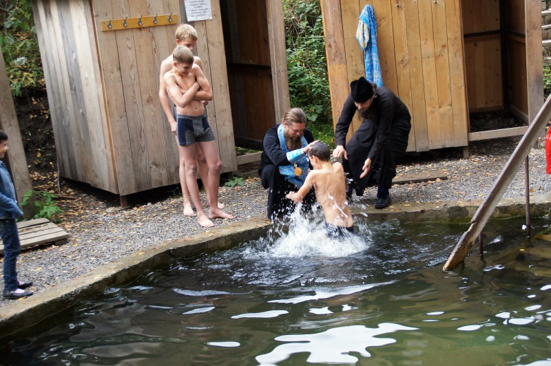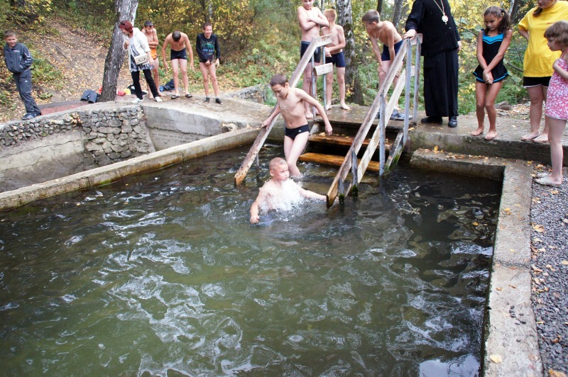 На святом источнике, месте невинно пострадавших православных священнослужителей, Владыка с детьми отслужил молебен иконе Божией Матери «Живоносный источник». После молебна дети и взрослые искупались в чистейших водах источника, и несколько детей стали просить Владыку покрестить их прямо тут на источнике. Преосвященный Владыка решил не откладывать это Таинство, тут же привезли необходимое облачение священнослужителям для его совершения. И совершили на святом источнике таинство Крещения.