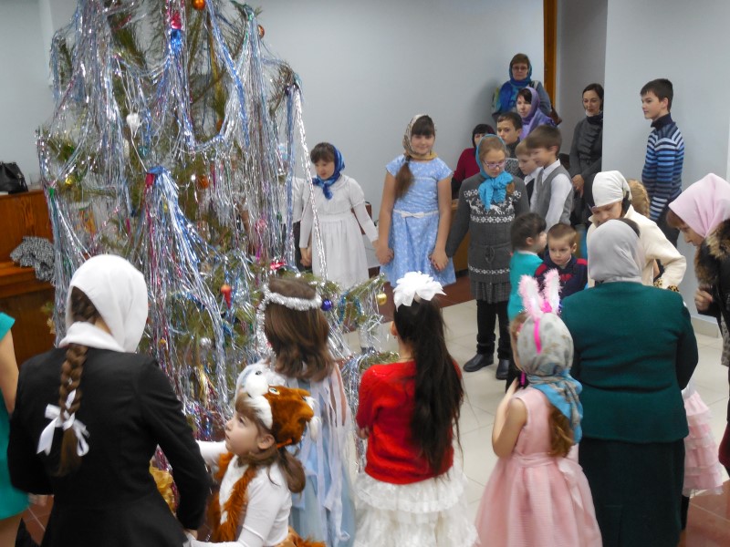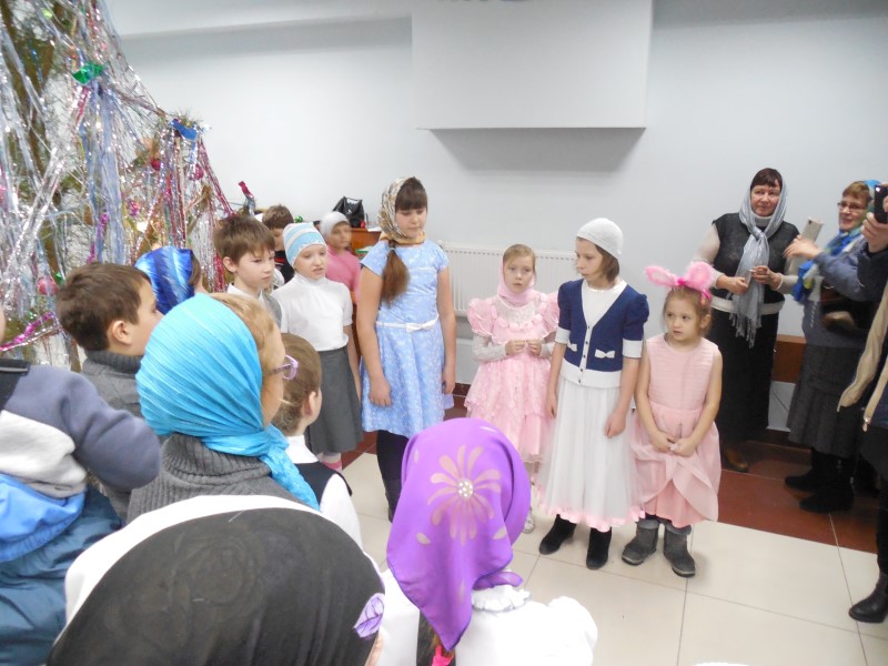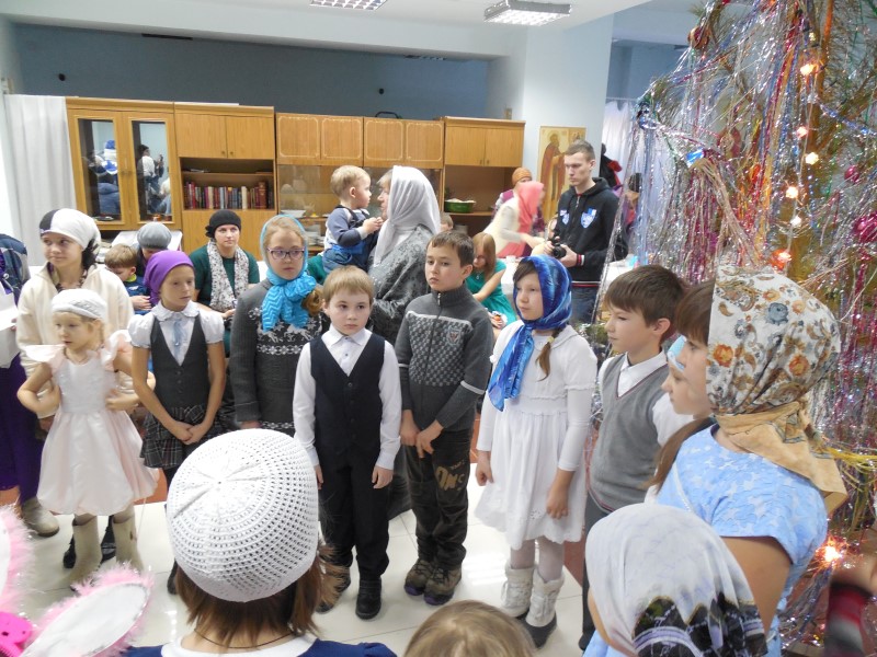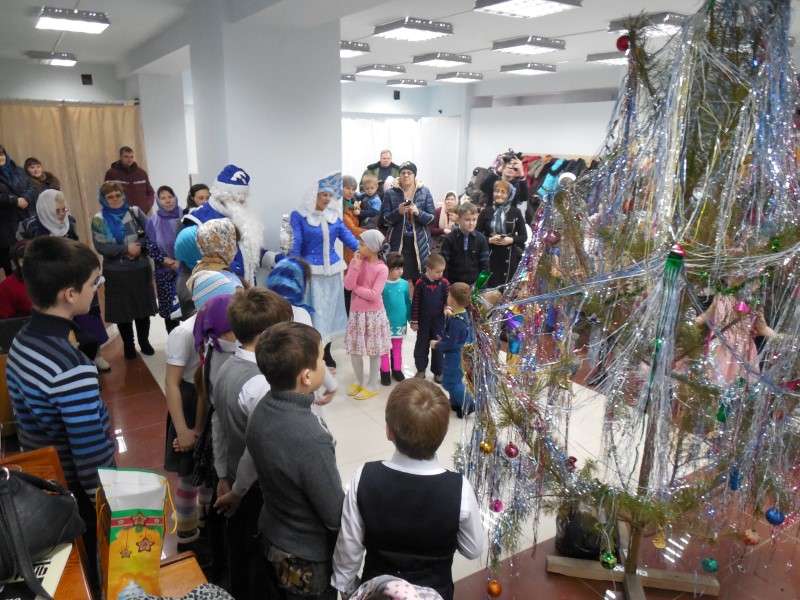 После окончания концерта всем детям роздали рождественские подарки и пригласили на чаепитие.