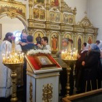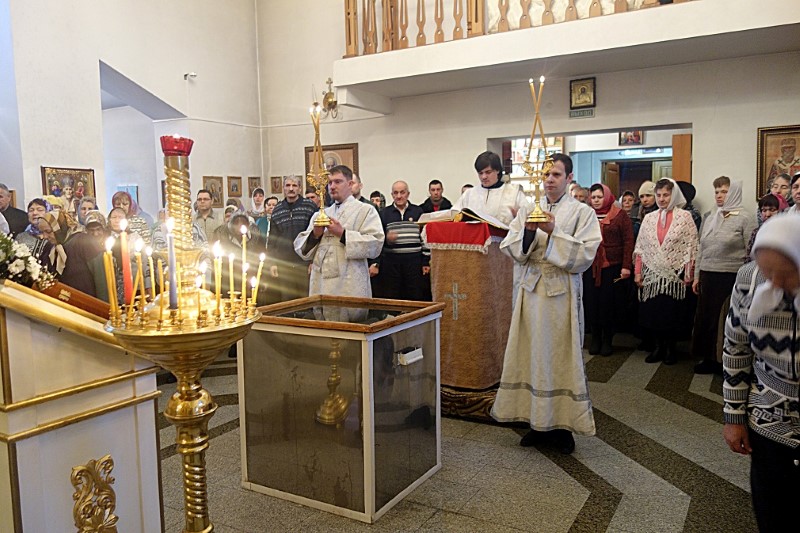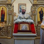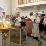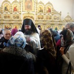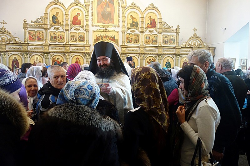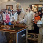 В конце Литургии состоялся чин Великого освящения воды. Затем Владыка окропил всех присутствующих святой вод, поздравил с праздником Крещения Господня и напомнил, что самым главным моментом этого праздника является все же Божественная литургия, а ее центральным моментом — Таинство Евхаристии — причащение Святых Христовых Таин.
