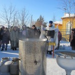 Даже те, кто никогда не переступал порог храма, стремятся получить благодатную воду. Мы служили крещенский сочельник 18 января, а 19-го, в самый день праздника, после Божественной литургии состоялось Великое освящение воды на улице.