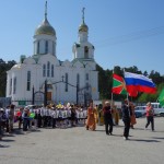 В этом году к праздничному шествию присоединилось множество духовенства и казаков, а школьников было гораздо больше, чем в предыдущие годы.
