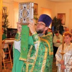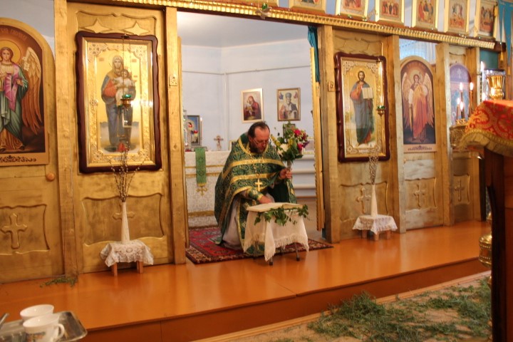 По окончании Литургии была совершена великая Троицкая вечерня с чтением коленопреклоненных молитв, за которой отец Евгений и прихожане в первый раз после светлых Пасхальных дней преклонили колени, чтобы вместе прочесть и выслушать необыкновенно красивые и глубокие по содержанию молитвы этого дня.