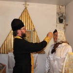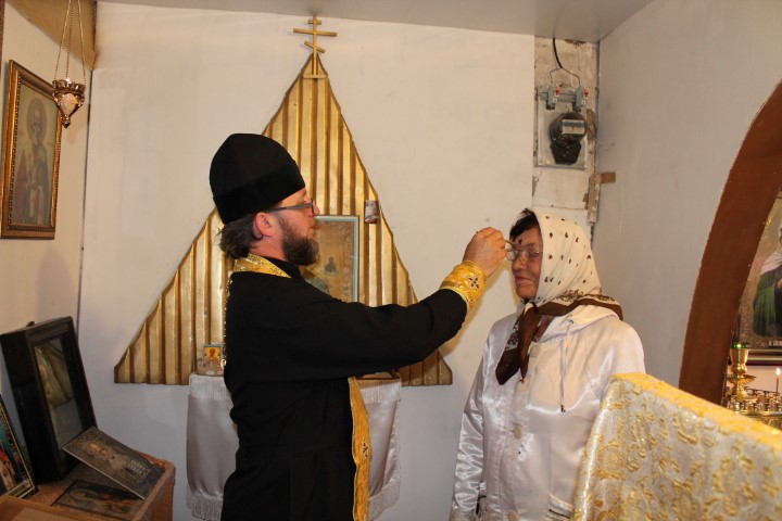 Батюшка окропил всех святой водой, помазал освященным маслом и освятил одну квартиру.