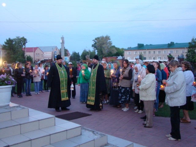 22 июня/среда. Приходом во имя святого апостола и евангелиста Луки города Купино совместно с Молодежным центром Купинского района проведена акция «Свеча памяти», посвященная 75-летию со дня начала Великой Отечественной Войны. В четыре часа по местному времени был совершен крестный ход от храма во имя святого апостола и евангелиста Луки города Купино до мемориала Героям фронта и тыла.