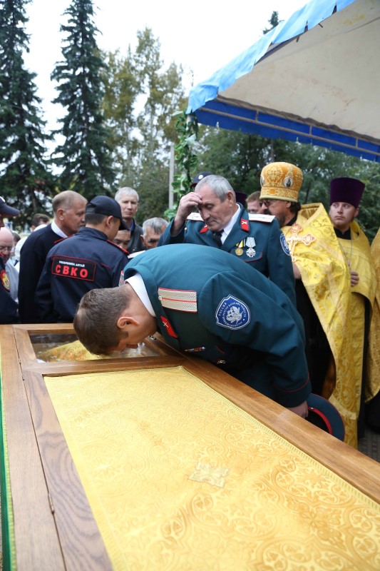 Курсанты ВПКО «Гвардия» и казаки с должным благоговением приложились к мощам Алтайского Святителя.
