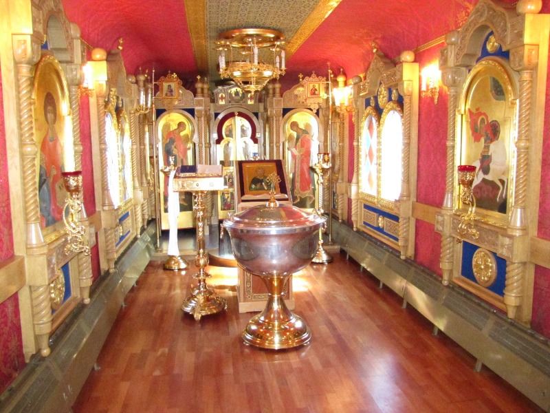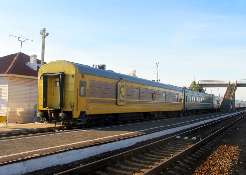 В составе поезда находится Вагон-Церковь во имя Святителя и Чудотворца Николая специально оборудован и оформлен по проекту специалистов из Свято-Троицкой Сергиевой Лавры. В вагоне-церкви предусмотрено всё для богослужения: алтарь с престолом, иконостас, иконы наиболее чтимых святых, место для клироса, колокольня, акустическая система. Это — второй вагон-церковь в Русской Православной Церкви. Первый был несколько ранее освящен в Москве.