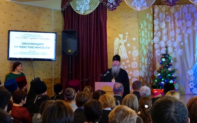Митрополит Новосибирский и Бердский Тихон выступил также с докладом «Эволюция нравственности». «Если веками на Руси нравственность считалась понятием абсолютным, то революция провозгласила относительность нравственности. Строителями нового государство было объявлено – «нравственно то, что полезно для революции», — сказал Владыка.