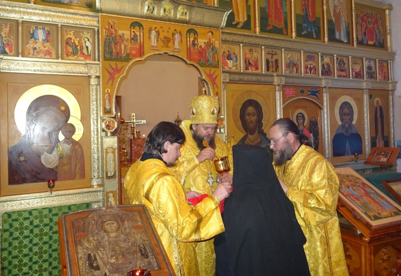 17 декабря/суббота. В день памяти вмч. Варвары Его Преосвященство епископ Филипп совершил Божественную литургию в Михаило-Архангельском женском монастыре с. Малоирменки.