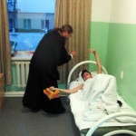 Поэтому мы в таких больницах всегда проводим беседу с детьми о православной вере, православных праздниках, раздаем иконочки, читаем с ними молитву «Отче наш» и окропляем их святой водой.