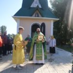 По окончанию Литургии состоялся молебен и крестный ход вокруг храма. Епископ Филипп прочитал молитву на освящение храма и окропил его святой водой.