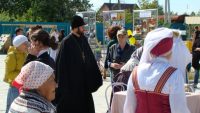 По окончании богослужения празднества переместились на территорию музейно-мемориального комплекса, на территории которого прошел праздник «Яблочный Спас». Иеромонах Мелхиседек поздравил жителей Купинского района, присутствующих на мероприятии, с праздником Преображения Господня, рассказал о значении праздника и освятил плоды этого года.