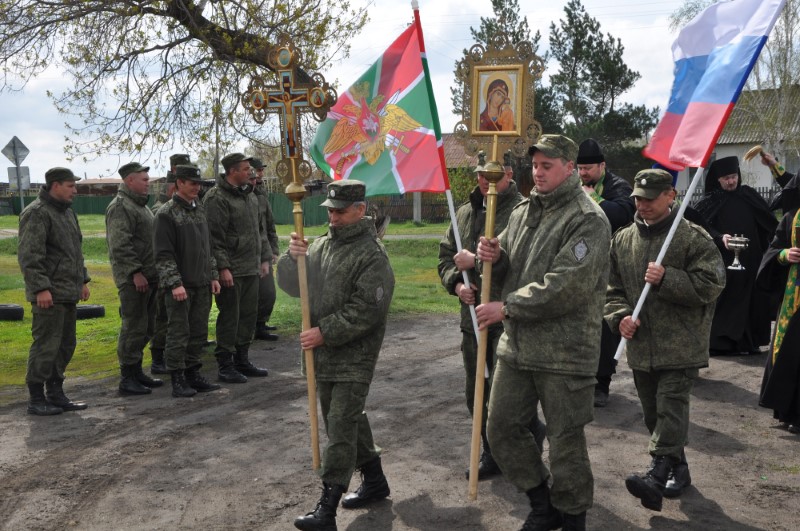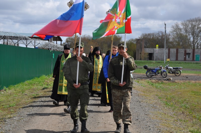 В 2-х км от с. Новокрасного начинается государственная граница России и Казахстана и на всем ее протяжении это самое ближайшее расстояние до ее священных границ. Духовенство благословило пограничников на дальнейшую ратную службу.