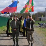 Затем крестный ход направился к обелиску воинам-пограничникам, который специально был сооружен к памятной дате — 100-летию пограничных войск России. Его изготовили сами пограничники, здесь будут служиться панихиды и литии по погибшим воинам-пограничникам, а также молебны — о ныне здравствующих воинах.