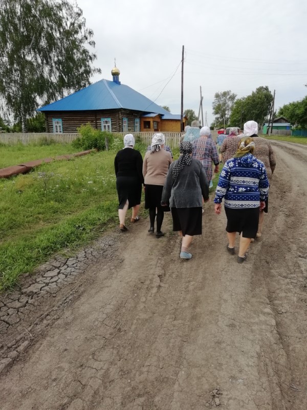 После окончания Литургии, за которой практически все присутствующие исповедовались и причастились Святых Христовых Таин, состоялся крестный ход до поклонного креста, водруженного на месте старого храма, разрушенного в советское время.