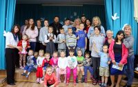 Затем по традиции окропил всех присутствующих воспитанников святой водой и раздал детям сладкие подарки и иконы.