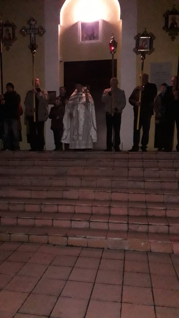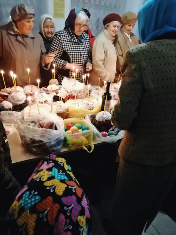 В субботу 27 апреля в 20.00 освятили куличи. Ночное пасхальное богослужение было торжественным и праздничным.