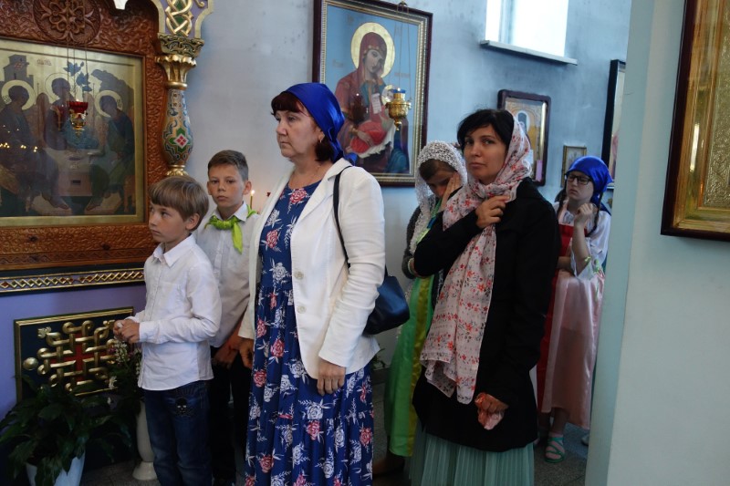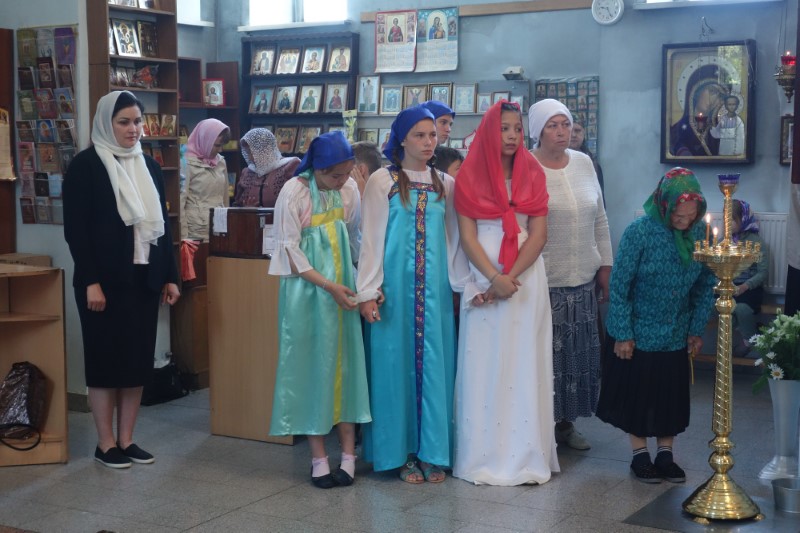Детская литургия — это обычная Литургия, только обращенная к уму и сердцу маленького ребенка. За Литургией молились дети православного детского лагеря во имя Архистратига Михаила. Мальчики пономарили и иподьяконствовали в алтаре, девочки вместе с хором пели на клиросе, а также смотрели за порядком и чистотой подсвечников, помогали по храму.