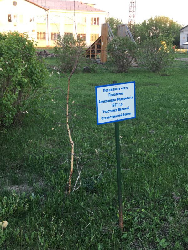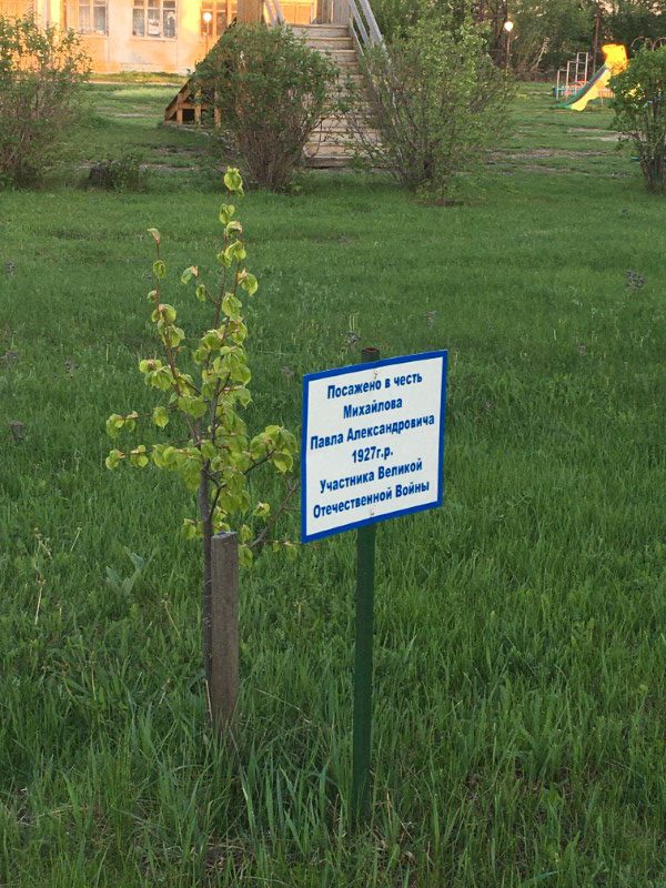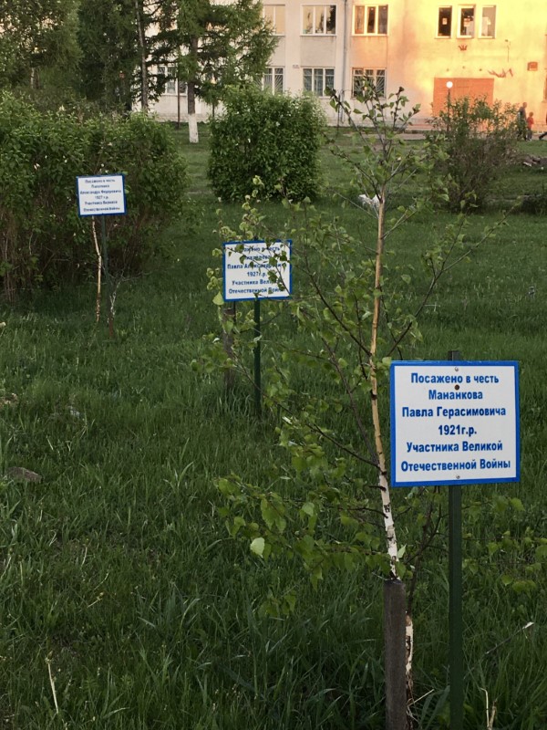 Здесь же деревца, посаженные последними ветеранами, дожившими до наших времен. Их подвиг не забыт!