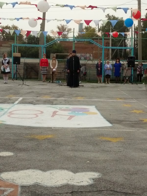 1 сентября — Всероссийский день знаний. Настоятель прихода во имя преподобного Сергия Радонежского с. Довольного протоиерей Андрей Гусев принял участие в проведении общешкольной линейки в Доволенской школе №2 имени Сергея Лазарева.