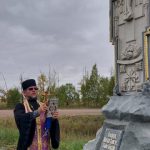 По завершении Литургии состоялся крестный ход к поклонному кресту, установленному у въезда в с. Половинное, и далее к поклонному кресту, установленному у въезда в с. Орехов Лог. Здесь, у подножия креста, батюшка совершил молебен о всех жителях Краснозерского района, окропил всех присутствующих святой водой и обратился к собравшимся с приветственным словом.