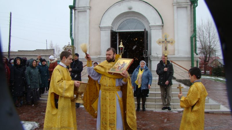 По окончании Божественной литургии совершен крестный ход вокруг храма.