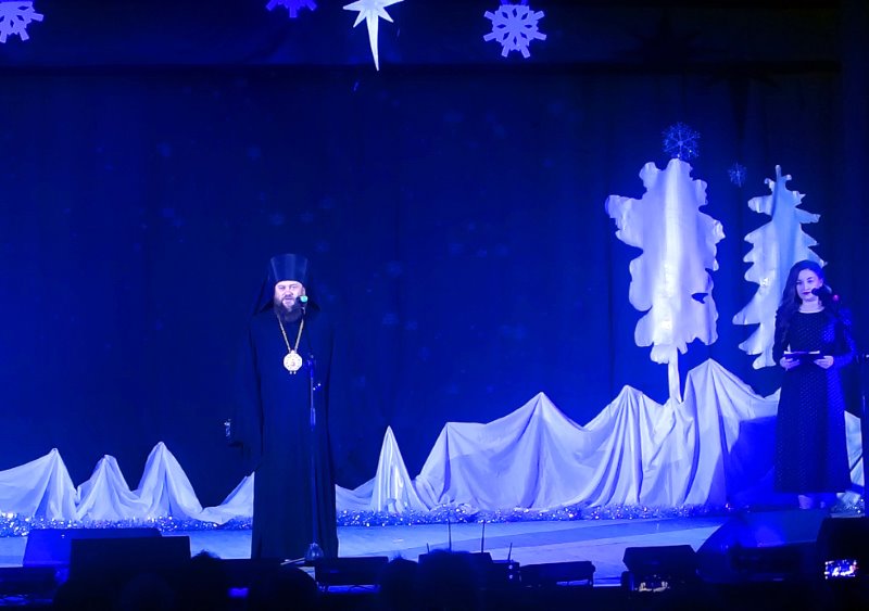 Епископ Филипп поздравил всех присутствующих в зале с праздником Рождества Христова и пожелал всем радости, мира, благоденствия, бодрости духа и щедрых милостей от Родившегося Богомладенца Христа.