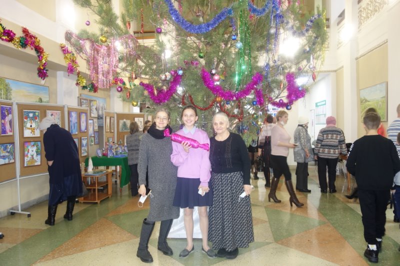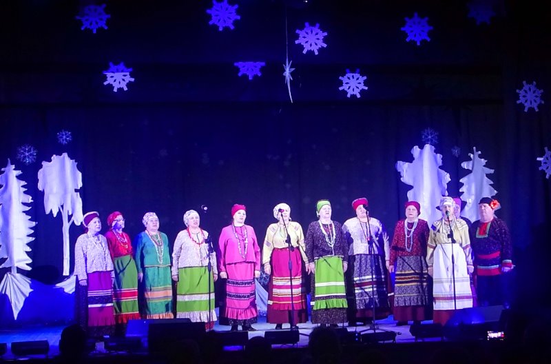 Мерцая разноцветными огоньками, встречала гостей в фойе Дома культуры новогодняя елка, настраивая их на рождественский лад.