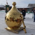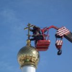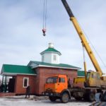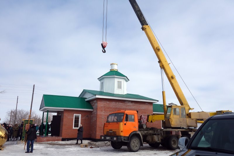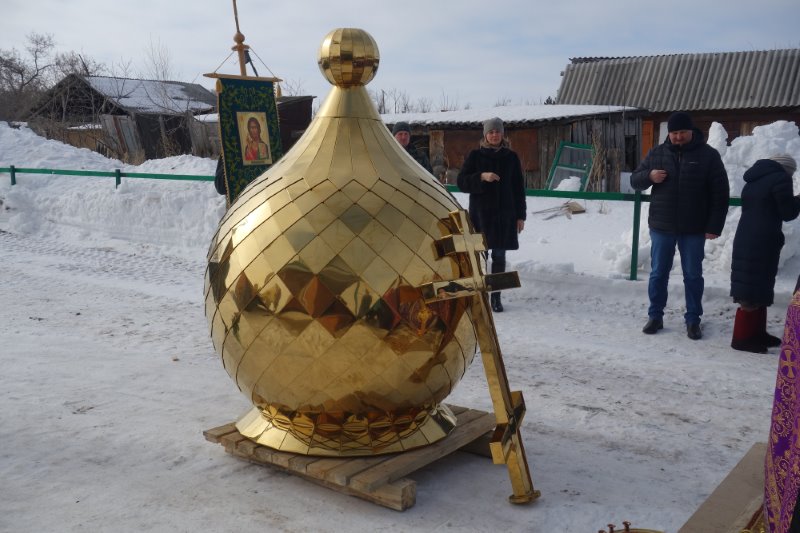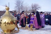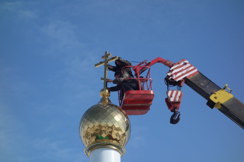 После прочтения уставных молитв епископ Филипп окропил купол с крестом святой водой и под пение присутствующих «Кресту Твоему покланяемся, Владыко» он был поднят и установлен на храме.