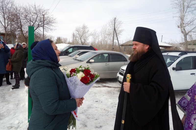В приветственном слове по завершении чина освящения Владыка поздравил жителей поселка со знаменательным событием, отметив что сегодня новый храм в поселке III Интернационал, который будет освящен во имя св. вмч. Варвары, обрел свою главу — святой купол и крест. И напомнил, что по слову св. отцов, Крест — это слава Церкви, украшение Святого Православия и орудие нашего спасения.