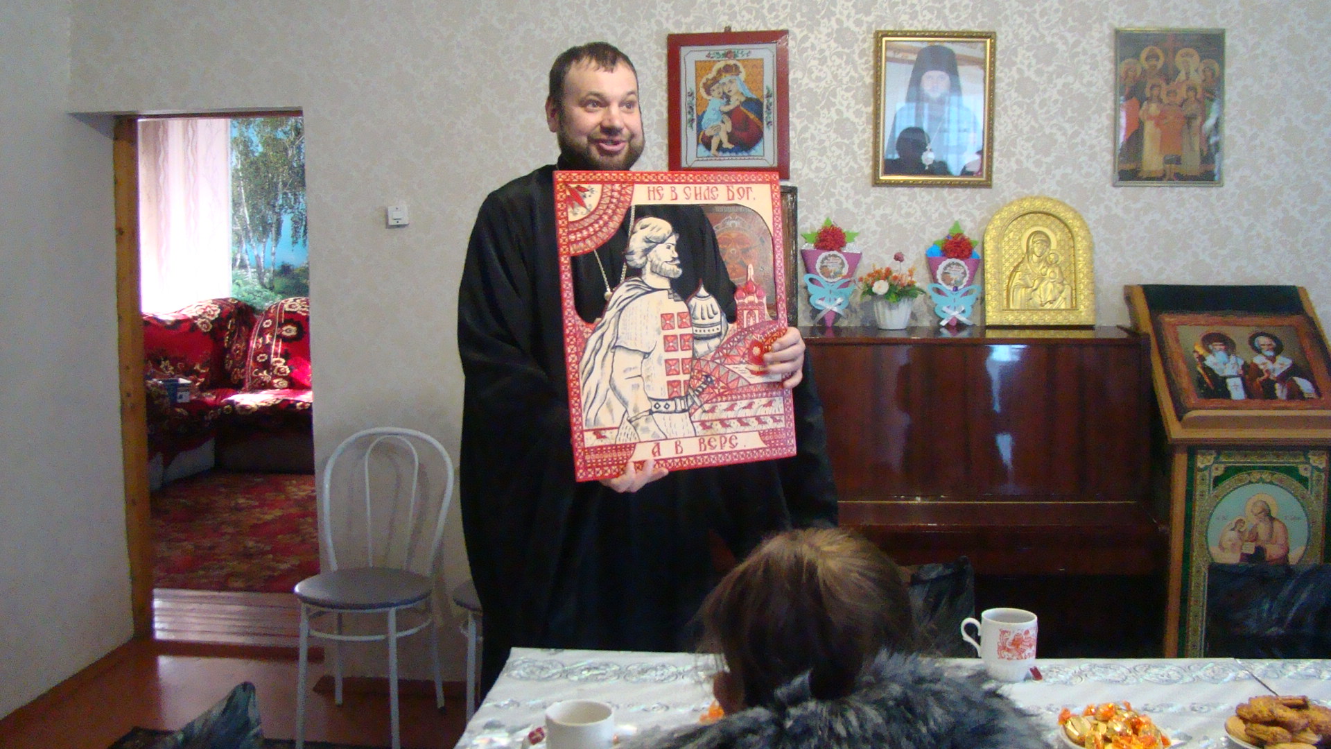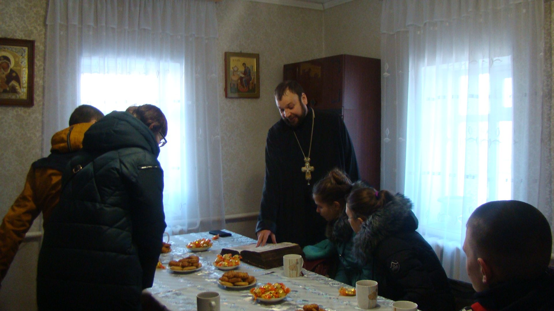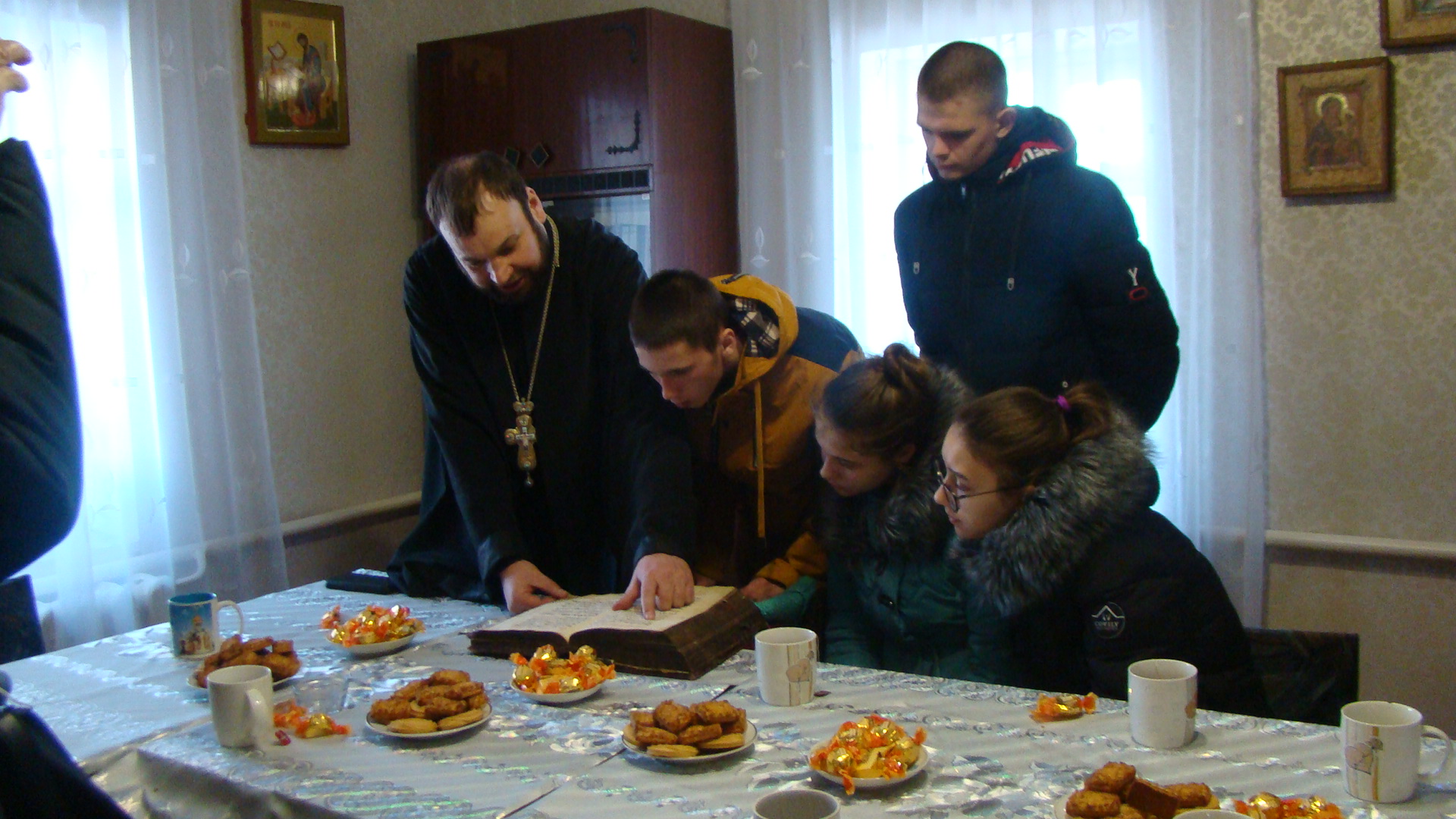Затем обучающиеся посетили воскресную школу прихода, где батюшка продолжил беседу за чашкой чая.