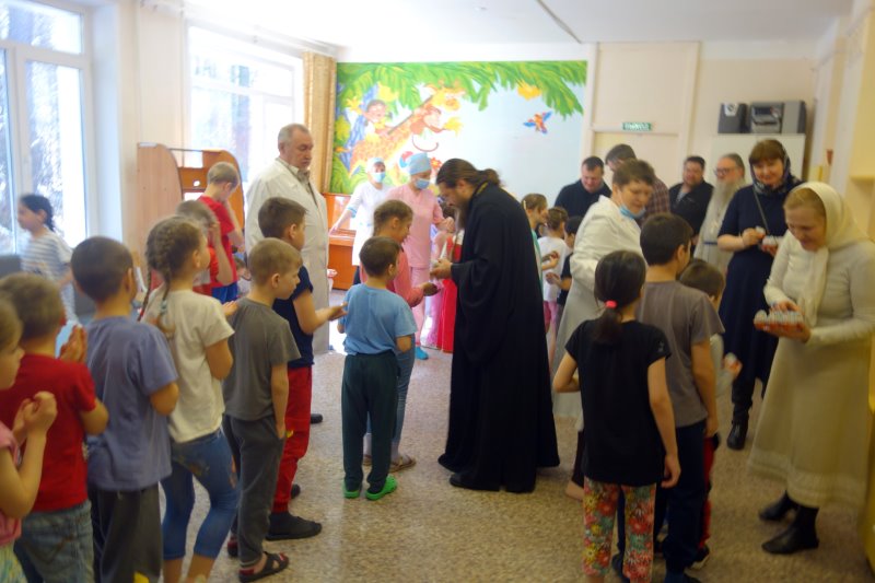 По его окончании владыка Филипп поздравил маленьких пациентов и медицинских работников с праздником Светлого Христова Воскресения, рассказал им об этом светозарном празднике и пожелал детям скорейшего выздоровления и всегда помнить о Господе, обращаться к Нему с молитвой и Господь услышит их детские прошения и исполнит их!