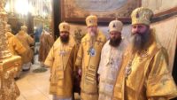 Божественную литургию в Успенском соборе монастыря возглавил Феогност, митрополит Каширский, викарий Святейшего Патриарха, в сослужении архиереев и духовенства.