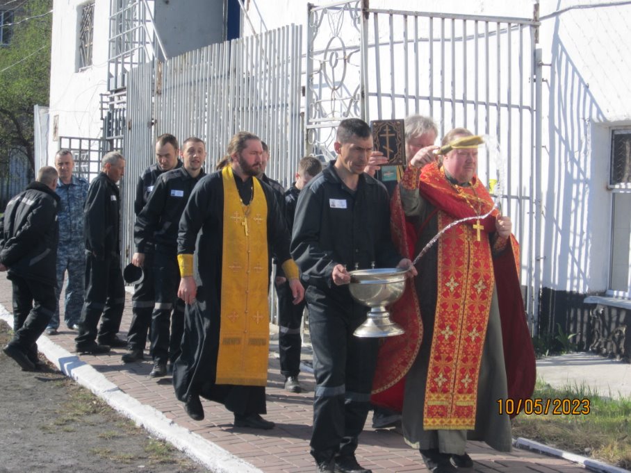 Священники отслужили водосвятный молебен, поздравили осужденных со Светлой Христовой Пасхой.