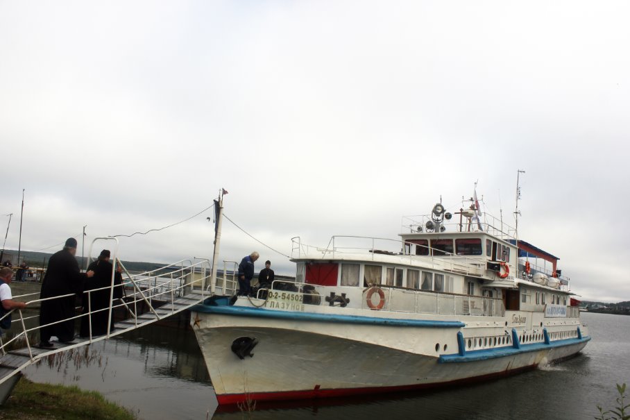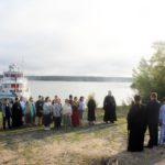 17 августа/четверг. Миссионерский корабль-церковь «Святой апостол Андрей Первозванный» прибыл в Ордынский район, где его на берегу Обского моря в 08:00 встретил Его Преосвященство епископ Филипп и глава Ордынского района Орел Олег Анатольевич.
