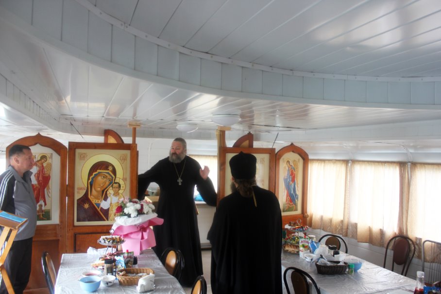 Владыка поприветствовал руководителя миссионерского отдела Новосибирской митрополии протоиерея Константина Работу, а также священнослужителей, миссионеров, врачей и всю команду корабля.
