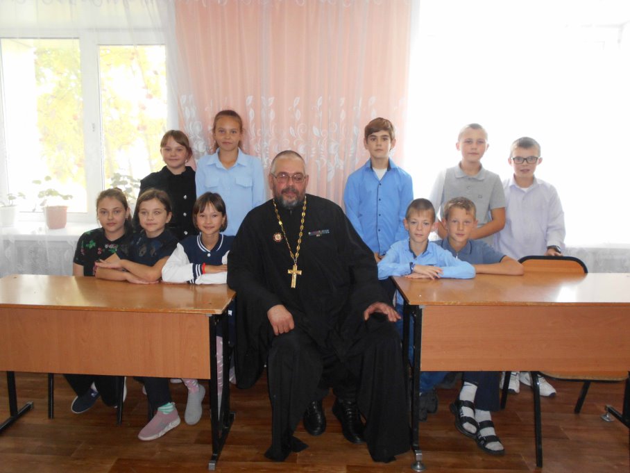 2 октября иерей Илия Березовский, настоятель храма в честь Успения Пресвятой Богородицы р.п. Чистоозерное, посетил школу № 1 рабочего поселка, где провел уроки по «Основам православной культуры» в четвертых классах.