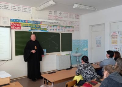 16 апреля священник Александр Лупарев встретился с родителями МБОУ «Решетовской СШ». на школьном собрании и рассказал им о модуле ОПК.