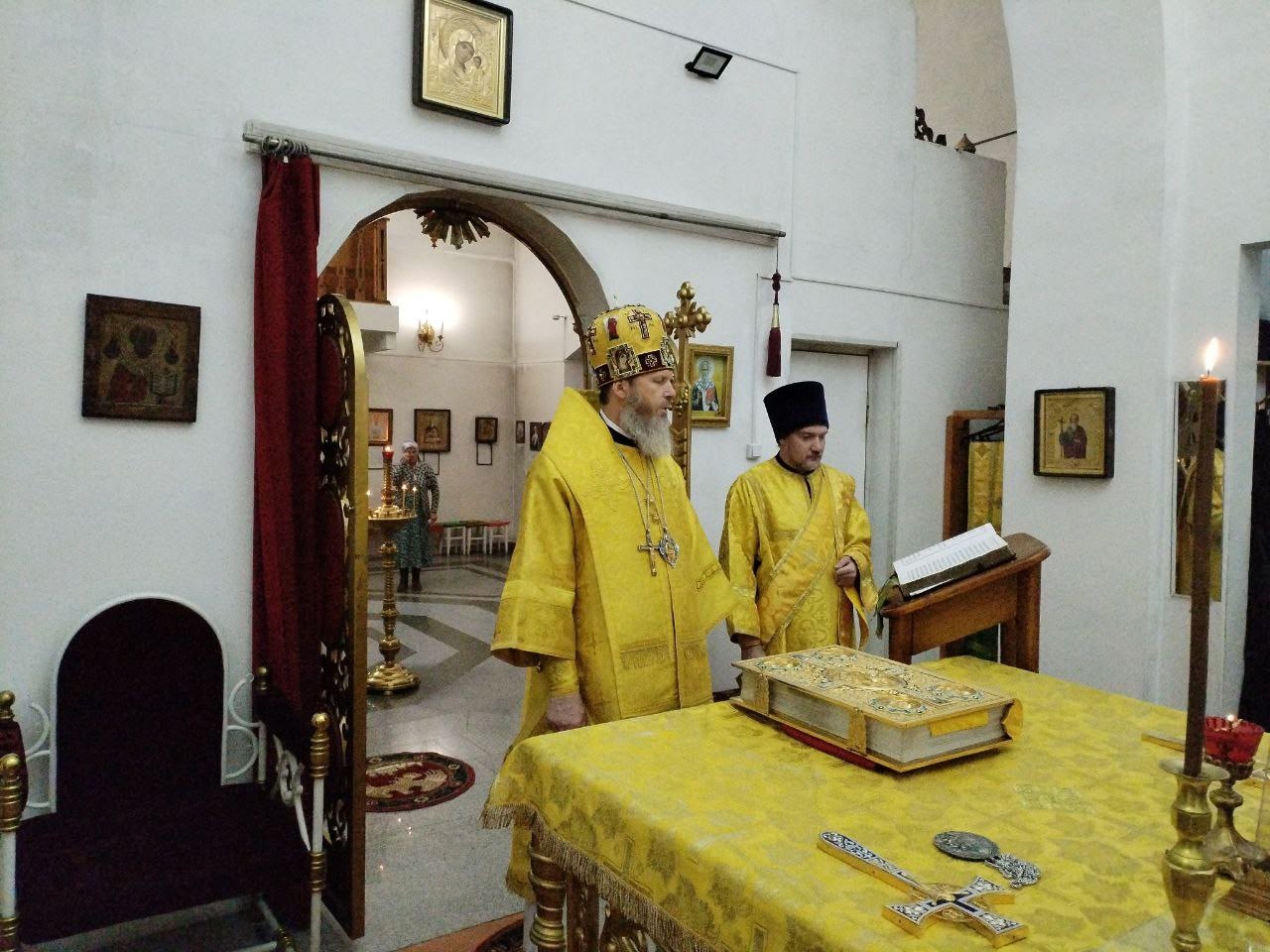 За литургией возносились особые молитвы об упокоении павших воинов. После богослужения к Епископу Варнаве подошёл воин Андрей, подписавший контракт и готовящийся отправиться в зону СВО механиком-водителем БМП. Архипастырь благословил его на предстоящее служение и помолился о том, чтобы он вернулся домой живым и невредимым к своей супруге и четырём детям.