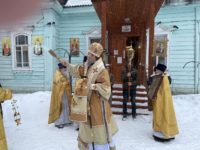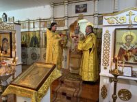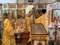 По окончании богослужения владыка поздравил духовенство и прихожан с престольным праздником, обратился к собравшимся с архипастырским словом и преподнёс храму икону святителя Николая Чудотворца.