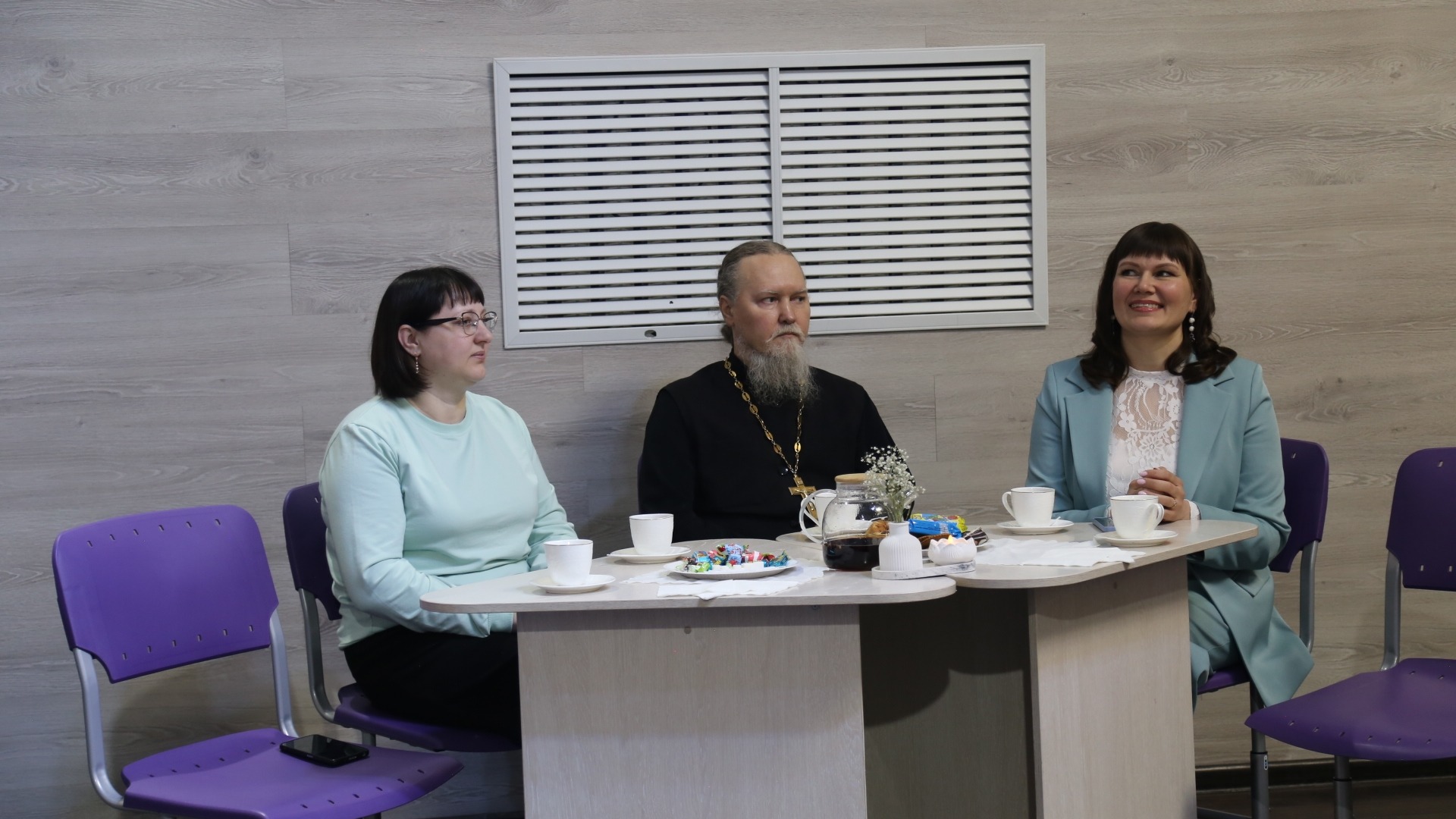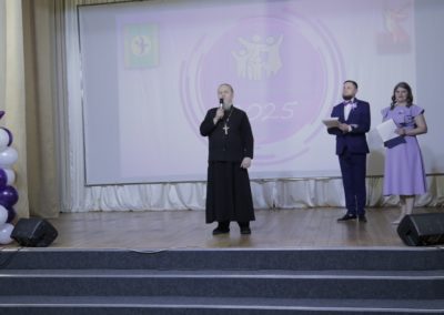Священнослужитель выступил с приветственным словом о христианском понимании семьи и брака, о важной роли семьи в жизни каждого человека и о тех принципах, на которых строятся семейные отношения, о почитании родителей и внимательном отношении к семейному укладу.