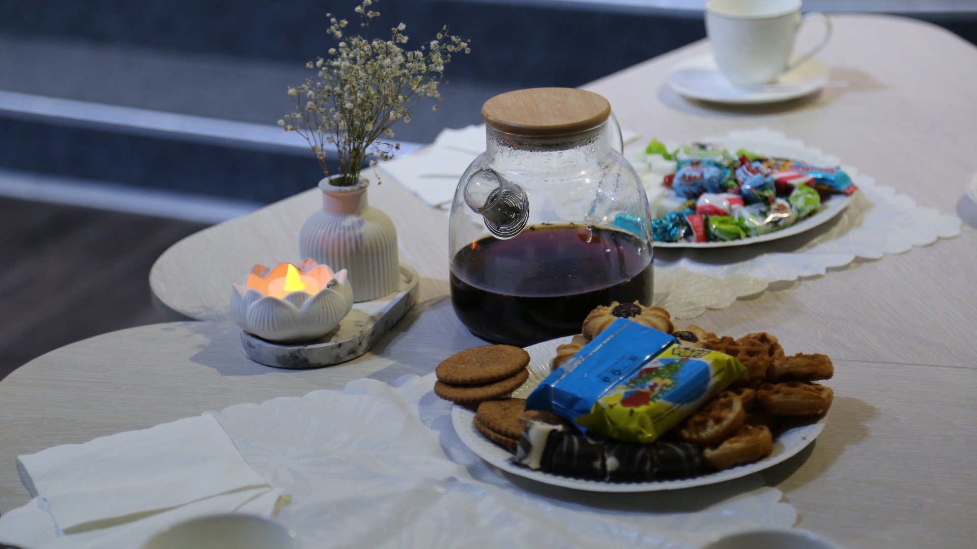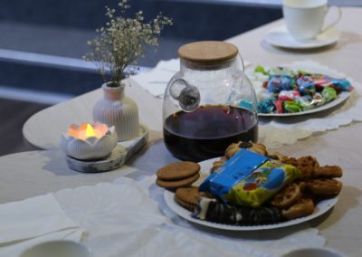 Для всех присутствующих была подготовлена праздничная концертная программа, на протяжении которой гости общались, пили чай и наслаждались выступлениями артистов.Атмосфера на празднике была семейной, дружеской и непринужденной.