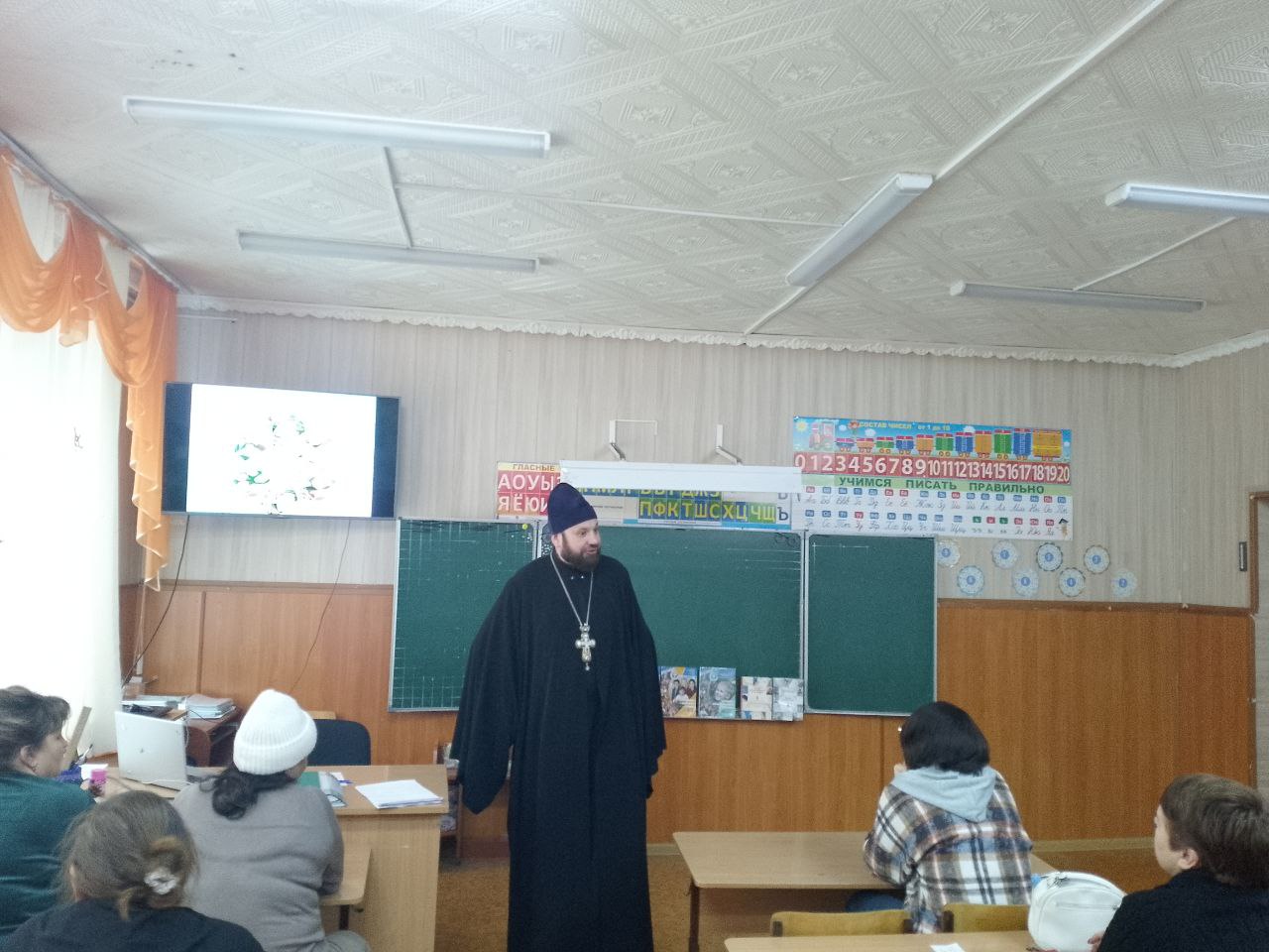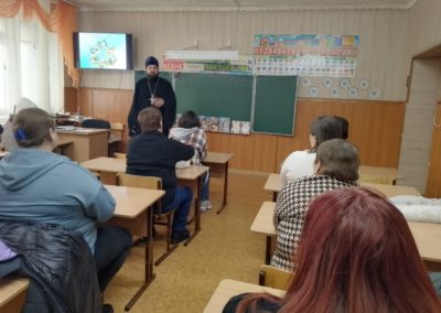 Батюшка пояснил родителям школьников предпочтение выбора модуля ОПК в курсе ОРКСЭ, который помогает детям найти ориентиры в познании добра и истины на основе веры, надежды и любви и ответил на вопросы родителей и педагогов.