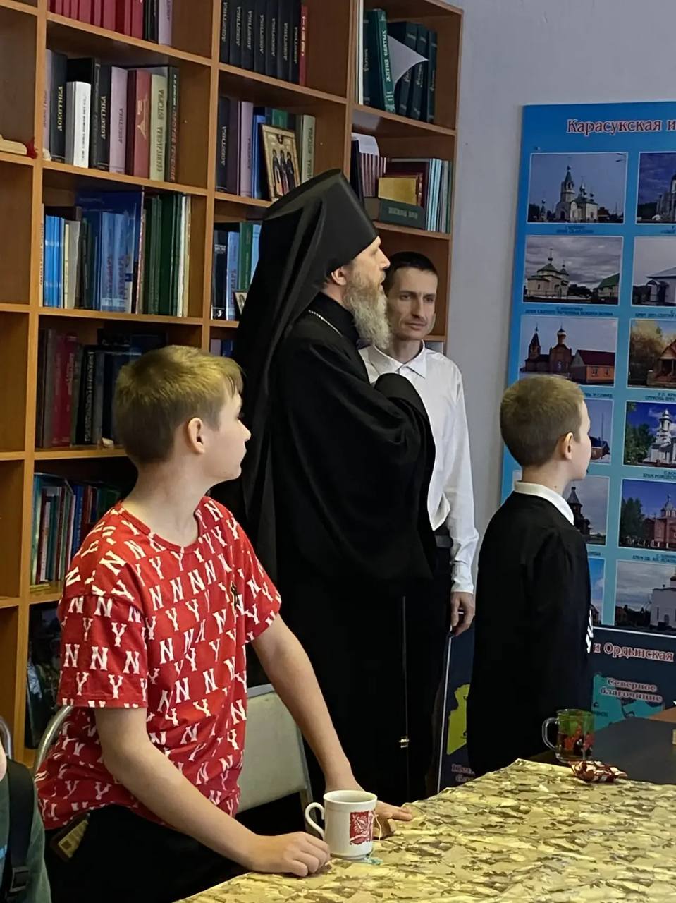 После богослужения архипастырь посетил занятия в воскресной школе при кафедральном соборе, где пообщался с детьми и их родителями. Главной темой встречи стало формирование отряда православных следопытов (Братства православных следопытов) на базе воскресной школы города Карасука. Владыка рассказал о важности этого движения для воспитания подрастающего поколения.