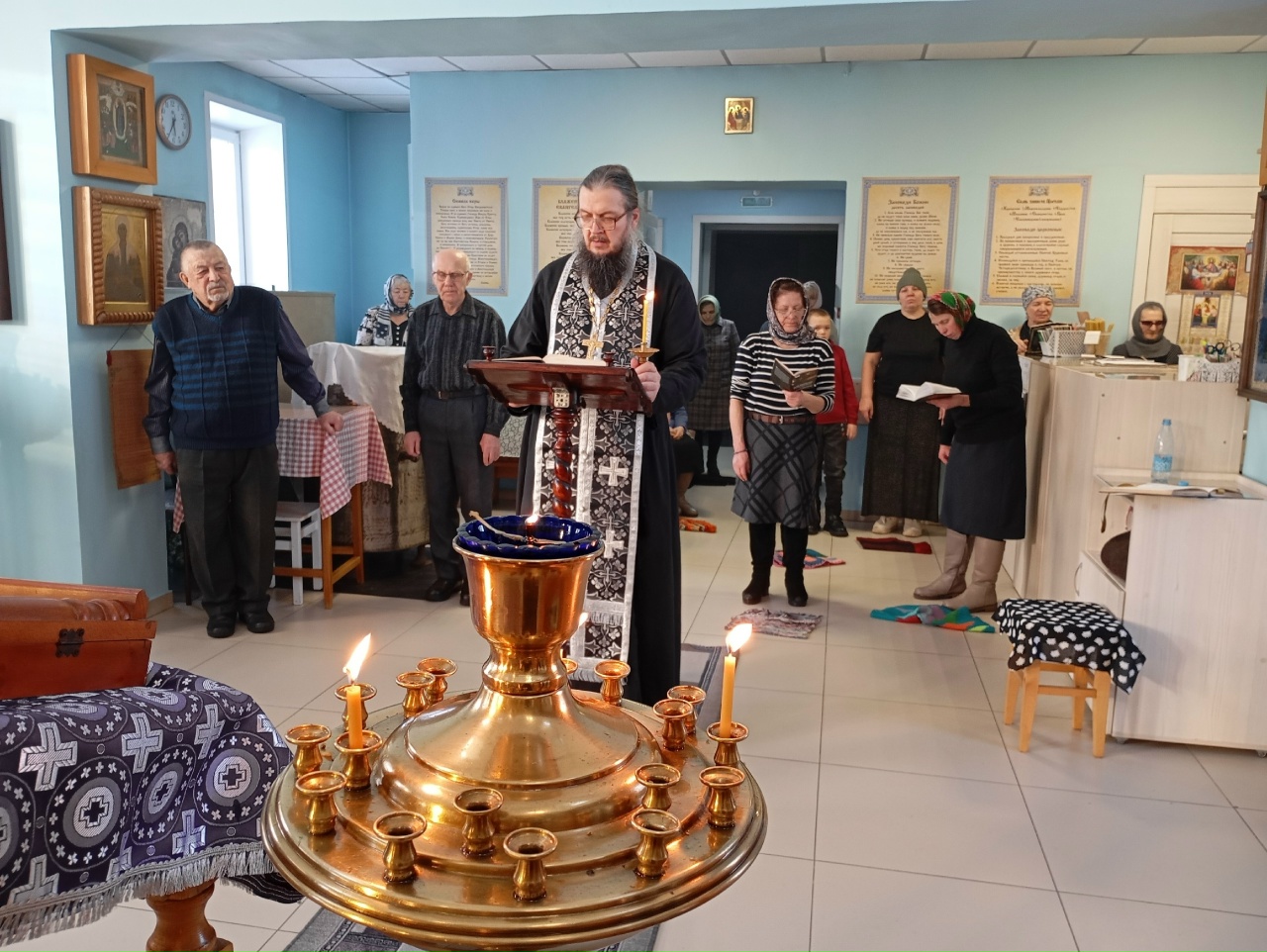 Первая седмица Великого поста была насыщена великопостными службами, которые продолжались практически целый день с 8 часов утра и до вечера с небольшим перерывом на отдых. На великом повечерии был прочитан Великий покаянный канон прп. Андрея Критского. В этом году 4-ую часть покаянного канона прочитал правящий архиерей, епископ Карасукский и Ордынский Варнава. Это первый визит владыки в с. Довольное со дня его назначения главой Карасукской епархии.