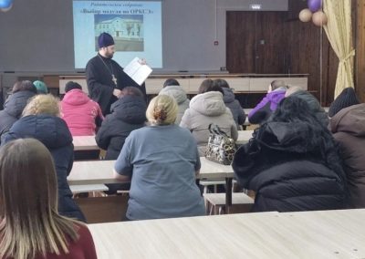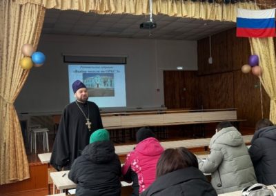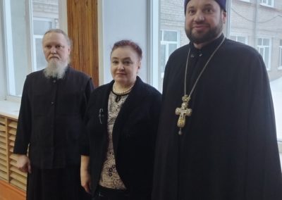Затем иеромонах Мелхиседек побеседовал с родителями учащихся о ценности православия в духовно-нравственном воспитании детей, о семейных традициях, о патриотическом воспитании