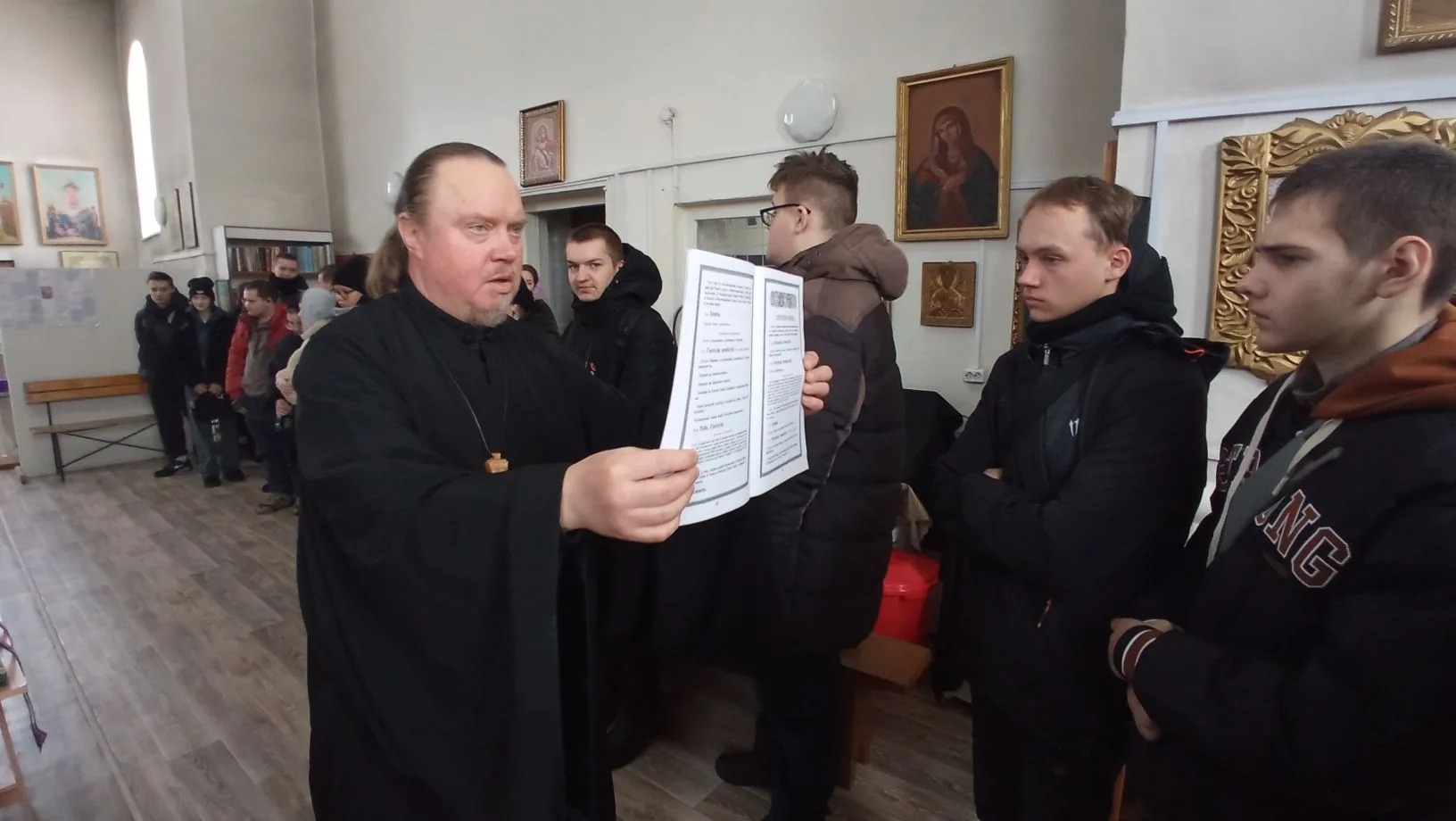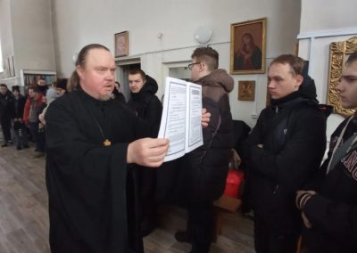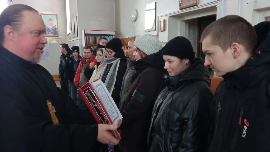 Настоятель храма иерей Михаил Прут рассказал ребятам об истории праздника, о первой книге «Апостол», напечатанной Иваном Федоровым в 1564 году, а также ознакомил их с богослужебными книгами.