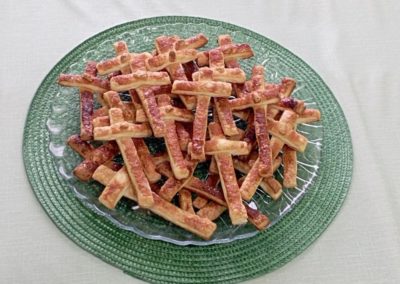 Боголюбивые прихожанки нашего храма со своими детьми выпекли такое печенье и угощали печеньем всех в храме. Это угощение было необычным и радостным «утешением» для взрослых и детей в великопостное время.